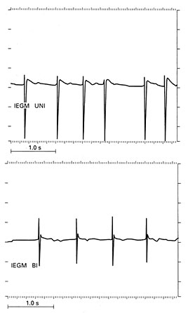 Figure 16f Unipolar (top) and bipolar (bottom) intracardiac